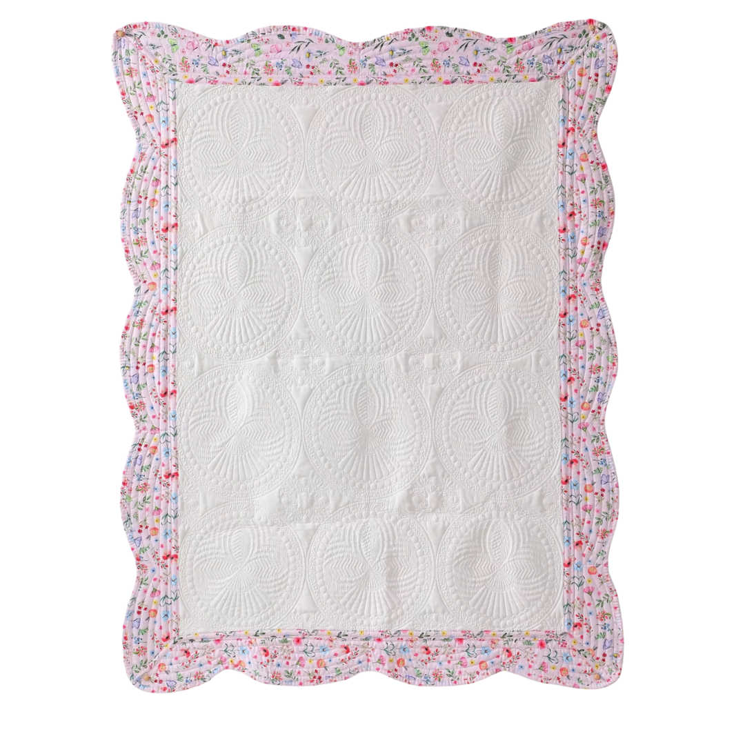 Our wonderful cotton heirloom quilt measures 46 x 36 inches which is perfect for all crib sizes and most toddler beds. It’s the perfect shower gift that no grandmother can resist. This is a great quilt that can be monogrammed by you to add to your profit margin.